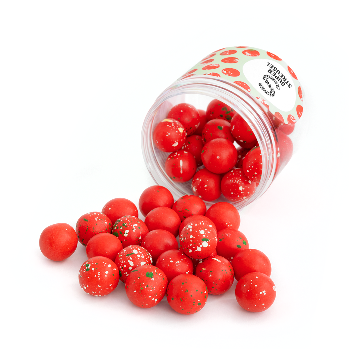 Und das Beste: Sie glänzen im festlichen Rot und sind mit geheimnisvollen schwarzen Sprenkeln geschmückt – wie kleine Weihnachtskugeln, die direkt vom Baum in deine Dessertschale gepurzelt sind.