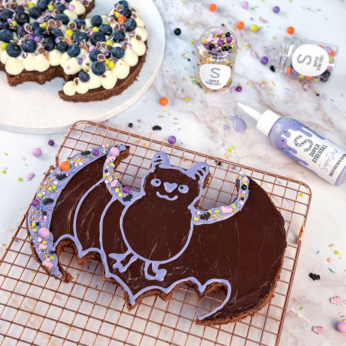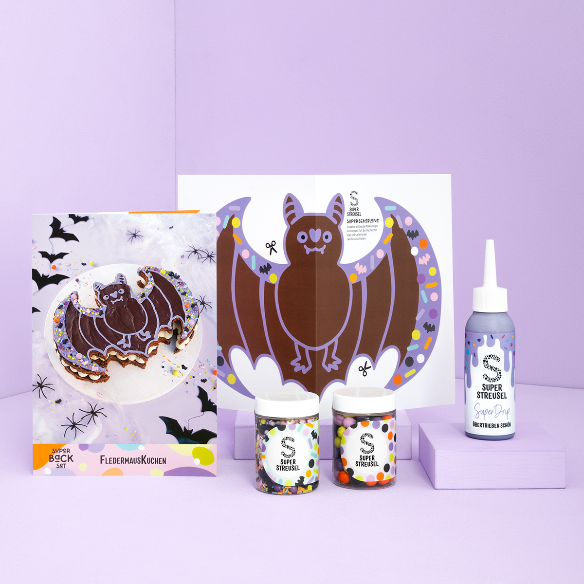 Den letzten magischen Schliff bringt der SuperDrip in mystischem Flieder: wie flüssige Hexenmagie tropft er über deinen Kuchen und macht ihn so richtig fledermausig gruseltoll!