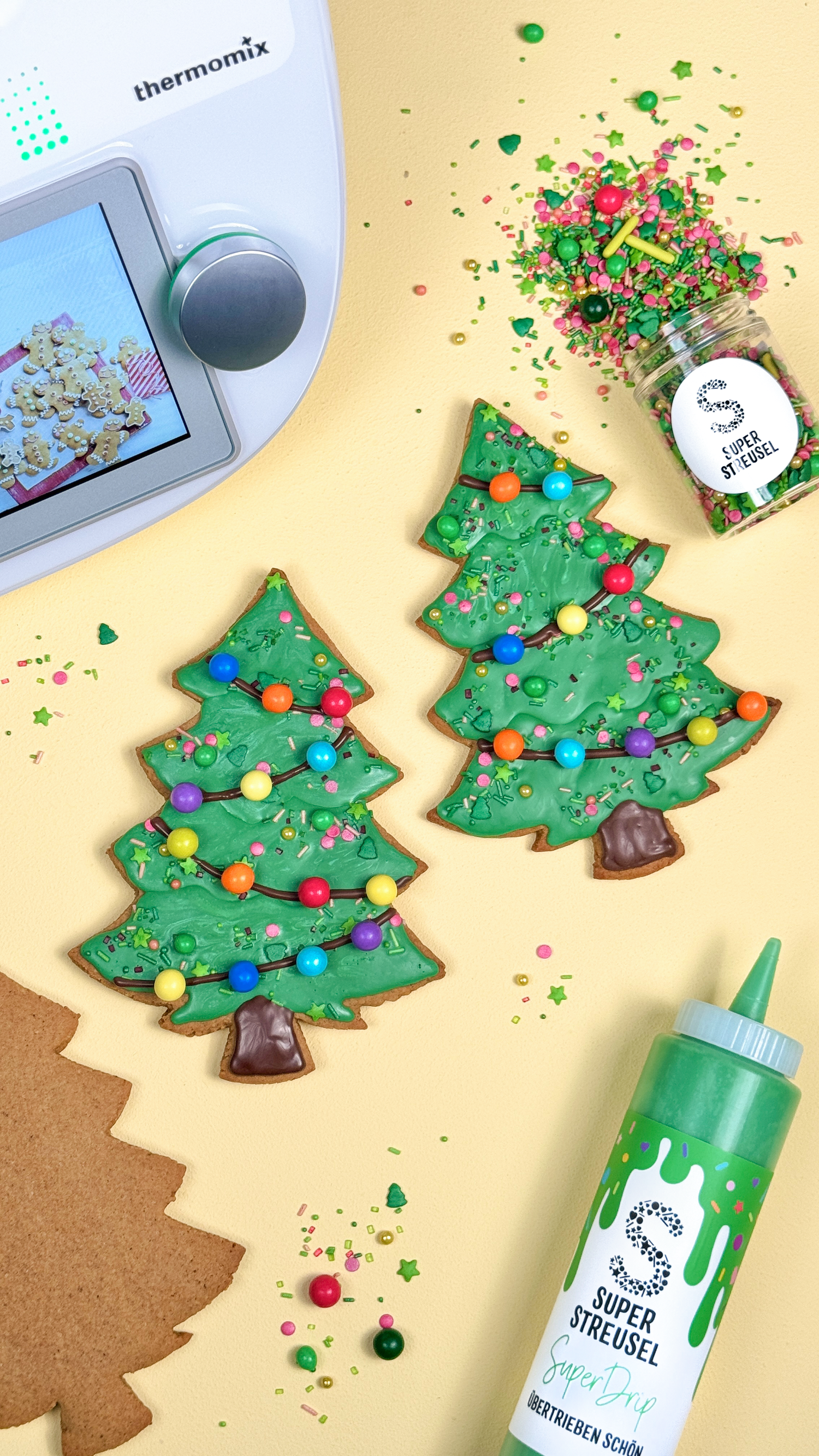 Die supersüßen Tannenbäume aus Lebkuchen schmecken so richtig schön weihnachtlich und beim Verzieren kannst du dich superstreuselig austoben. Bei Cookidoo® findest du das Rezept unter „Lebkuchenmänner“.