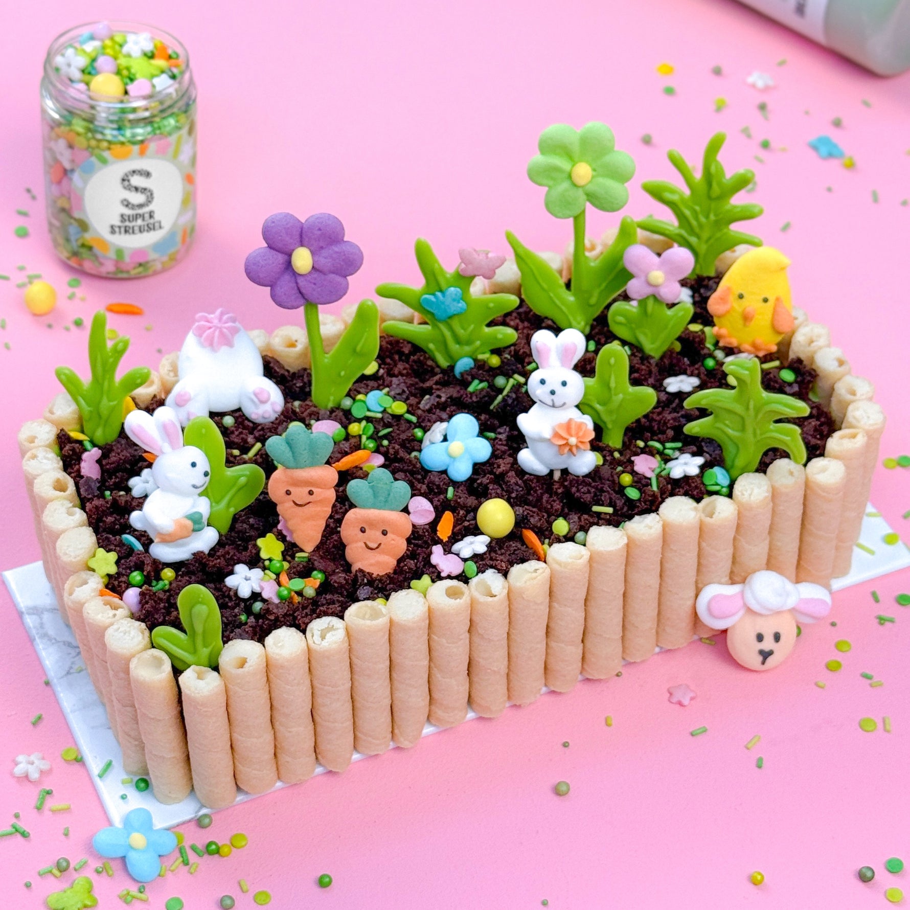 OsterPompöster ZauberSet! Mit diesem OsterSet kommt kein OsterGebäck an allerbester OsterSuperLaune vorbei. Also mehr Ostern geht halt auch wirklich nicht: SuperDrip Limettengrün für die Osterwiese auf deinem Gebäck, FrühlingsFlitzer mit allem, was sich auf den Osterwiesen rumtreibt: Häschen, Schmetterlinge, Ostereier, Blümchen und Möhrchen. Dazu auch noch SuperDringer Hasi´s Gang mit den süßesten Schäfchen, Häschen und Küken. Also jetzt mal ernsthaft, mit dem OsterSet bist du sowas von vorbereitet auf Ostern. Da könnte der Osterhase schon morgen bei dir reinhoppeln und die Family vor der Tür stehen – kein Problem! Ostern ist da, wo das OsterSet ist.