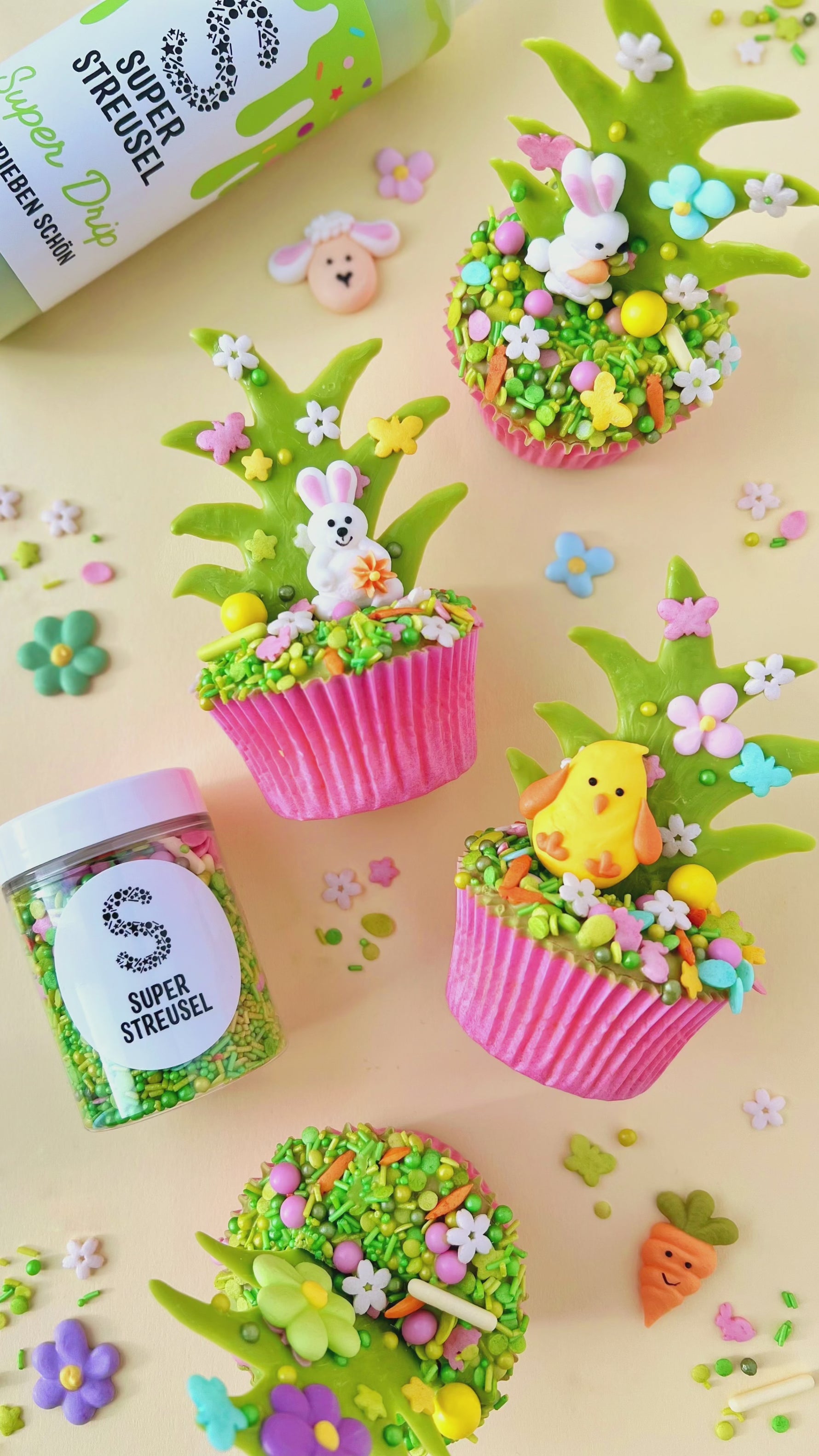 OsterPompöster ZauberSet! Mit diesem OsterSet kommt kein OsterGebäck an allerbester OsterSuperLaune vorbei. Also mehr Ostern geht halt auch wirklich nicht: SuperDrip Limettengrün für die Osterwiese auf deinem Gebäck, FrühlingsFlitzer mit allem, was sich auf den Osterwiesen rumtreibt: Häschen, Schmetterlinge, Ostereier, Blümchen und Möhrchen. Dazu auch noch SuperDringer Hasi´s Gang mit den süßesten Schäfchen, Häschen und Küken. Also jetzt mal ernsthaft, mit dem OsterSet bist du sowas von vorbereitet auf Ostern. Da könnte der Osterhase schon morgen bei dir reinhoppeln und die Family vor der Tür stehen – kein Problem! Ostern ist da, wo das OsterSet ist.