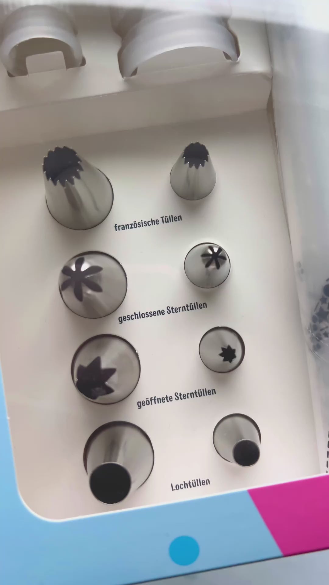 Im SpritztüllenSet enthalten sind: 26 transparente, reißfeste Einwegspritzbeutel (23cm x 30cm), 4 kleine Tüllen mit 1,8 cm Durchmesser (französische Tülle (32), geschlossene Sterntülle (129), geöffnete Sterntülle (18) und Lochtülle (12)), 4 große Tüllen mit 2,5 cm Durchmesser (französische Tülle (4B), geschlossene Sterntülle (2D), geöffnete Sterntülle (1M) und Lochtülle (2A)), 1 Adapter für kleine Tüllen und 1 Adapter für große Tüllen.