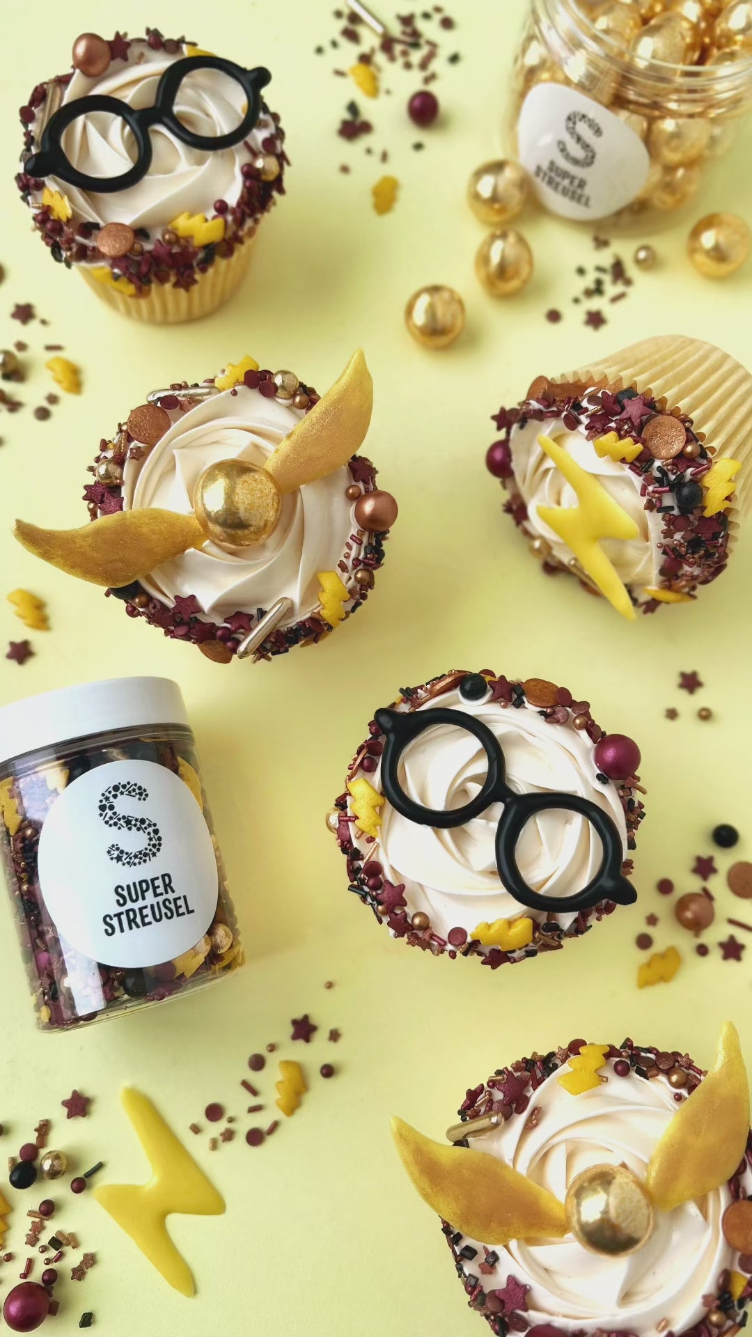 Ein StreuselMix mit Zauberkraft! Ja, echt! Wenn du ZauberSchule auf dein Gebäck streuselst, ist es im Nu wunderschön. Und das ganz ohne Zauberspruch á la Harry Potter! Mit den gelben Blitzen, goldenen Zuckersticks und Schokokugeln in Bordeaux, Kupfer, Schwarz und Gold verzauberst du jedes Backwerk! Dazu noch Sternchen in Bordeaux, große und kleine Konfettistreusel und Kügelchenstreusel in schimmernden Bordeaux- und Kupfertönen. Ein Muss auf spektakulären Torten für die Harry Potter Mottoparty, magischen Cupcakes für den Kindergeburtstag und verzauberte Süßigkeiten für die kleinen Zauberer zu Hause.
