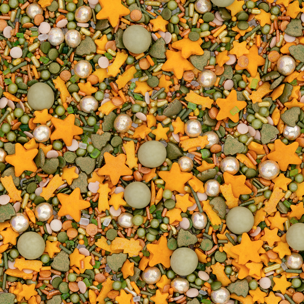 Im SchnuppiSchnupp stecken lauter glänzende Highlights: gelbe große SternStreusel, funkelnde KometenStreusel und kleine SternStreusel, tiefgrüne TannenStreusel, dazu goldene Mini Knusperkugeln und olivegrüne Schokokugeln mit zartem Schokokern. Zusammen bringen sie Glanz, Magie und Weihnachtsfreude auf jeden Plätzchenteller.