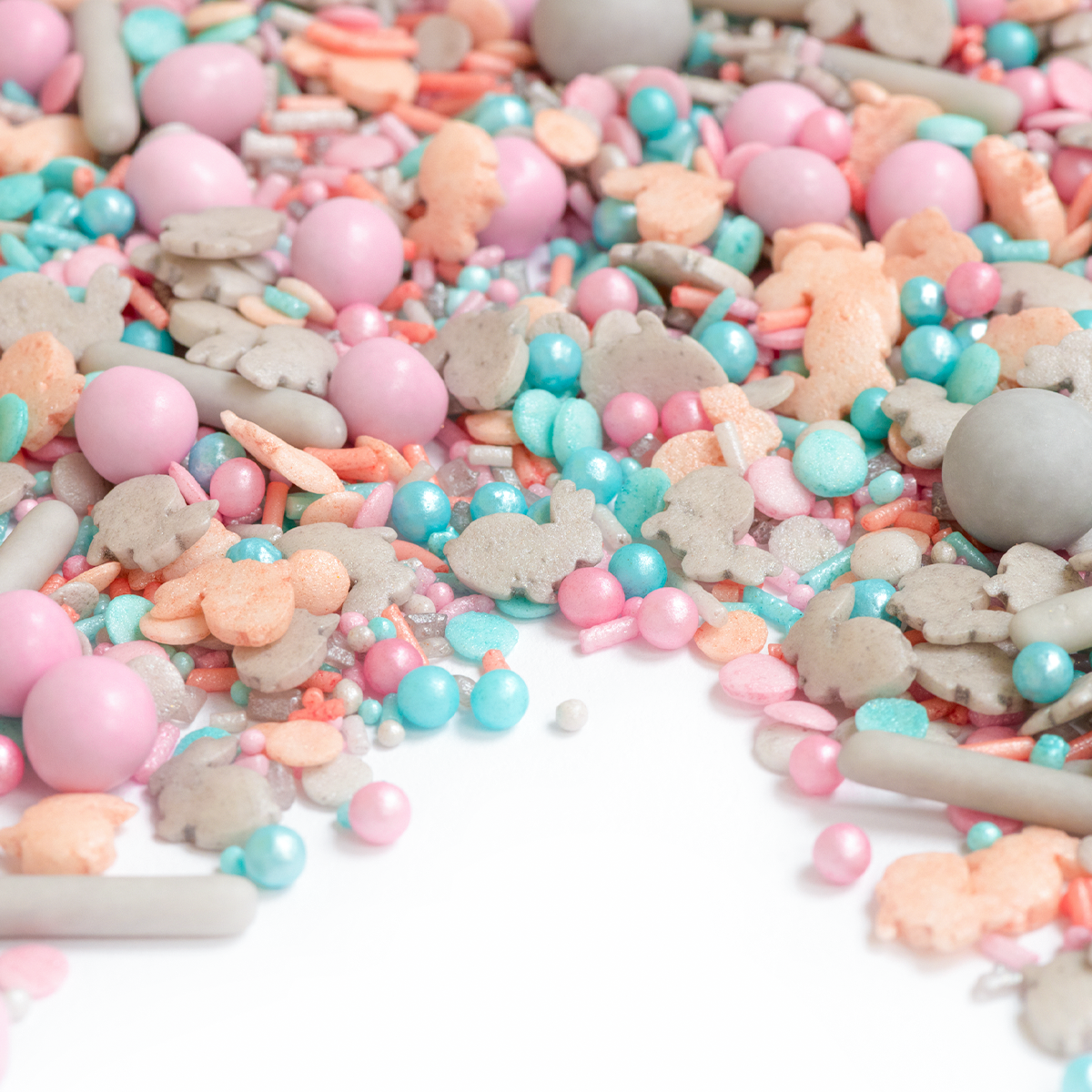 Unser "KnabberKumpel" StreuselMix ist der perfekte Begleiter für deine Osterbäckerei. Er enthält eine Mischung aus türkisen, rosa und grauen Streuseln, peachfarbenen und grauen minisüßen Hasenstreusel und oberleckeren, zarten Schokokugeln in Rosa und Grau. Damit zauberst du niedliche Osterplätzchen, HäschenCupcakes und fröhliche Osterkränze. Bereite dich drauf vor, deinen KnabberKumpel zu teilen und den Osterspaß zu verdoppeln!