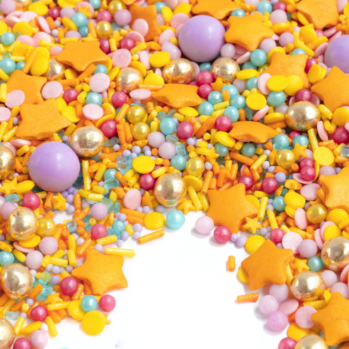 Mit drin im Mix sind große, gelbe SternStreusel, leckere Schokokugeln in Rosa, crunchige mini Knusperkugeln in Gold und jede Menge bunte Konfetti- und Kügelchenstreusel in Blau, Rosa, Gelb und Pink. Na, wenn das nicht die perfekte BlingBling Mischung ganz nach Rossy´s Geschmack ist.