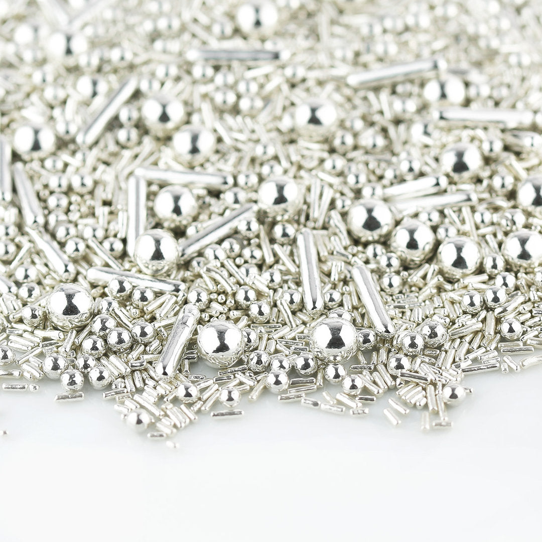 Einzelpreis 8,78 € pro 100gGlanz und Gloria springen dich an, wenn du diese Streusel-Dose öffnest. Die ist in diesem einfarbigen Streusel-Mix nämlich prall gefüllt mit allem, was silber ist: Silberne Zuckerstreusel, silberne Zuckerperlen, silberne Zuckersticks (die mit der Macaroni drin) und die unvergleichlich genialen Schokostreusel, genauer gesagt silberne Schokokugeln, die du ganz soft mitnaschen kannst. Damit werden deine Kuchen, Torten und Cupcakes zum Rockstar unter den Backwerken!