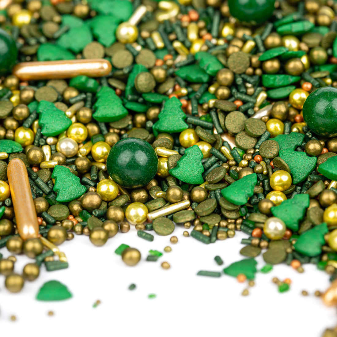 O Tannenbaum, O Tannenbaum wie hübsch siehst du auf unseren Plätzchen aus?! Wir sehen die Plätzchen vor lauter Streuseln schon nicht mehr. Von TannenTänzchen kannst du einfach niiiiie genug bekommen. Frei nach dem Motto: Viel hilft viel und umso mehr desto schöner. Ein WeihnachtsTraum in Grün mit WeihnachtsbaumStreuseln in Tannengrün, Schokokugeln in Dunkelgrün und Konfettistreuseln in Olivegrün. Dazwischen goldene Zuckersticks und Kügelchenstreusel.