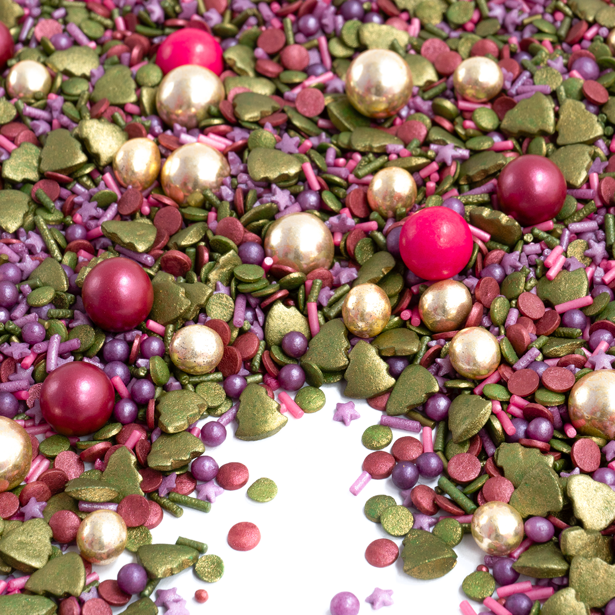 Wünschst du dir auch, du könntest zaubern? Und Plätzchen, Lebkuchenhaus, Weihnachtstorte & Co. blitzschnell wunderschön zaubern? Es geht – jaaaaa, wirklich! Mit ZauberWald zauberst du all dein Weihnachtsgebäck kinderleicht und superfix wunderschön. Diese zauberhaften StreuselSchätzchen sind in ZauberWald dabei: Tannenbäume in mystisch dunklem Waldgrün, glänzend goldene Schokokugeln, knallig pinke Schokokugeln, lila mini Sterne und passend dazu Konfetti- und Kügelchenstreusel in Waldgrün, Lila, Pink und Bordeauxrot. WOW, wenn da nicht direkt gemütliche Weihnachtsstimmung aufkommt.