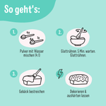 Dein Kuchen braucht ein Upgrade? Unsere SuperGlasur verpasst jedem Gebäck den WowEffekt – in nur wenigen Sekunden! Einfach Pulver + ein paar Tropfen Wasser = bunte Zuckerglasur. Kein Erwärmen, kein Stress – nur superschön!