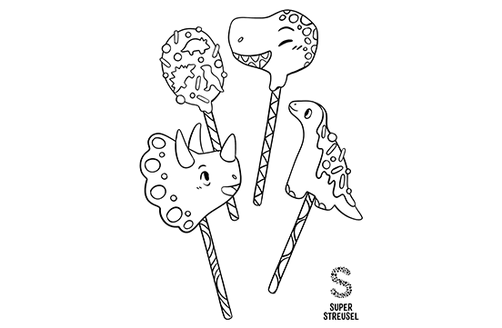 Zum kunterbunten Zeitvertreib haben wir euch ein tolles Dino Cake Pops Ausmalbild für selbstgemachte Geschenke zum Download erstellt.