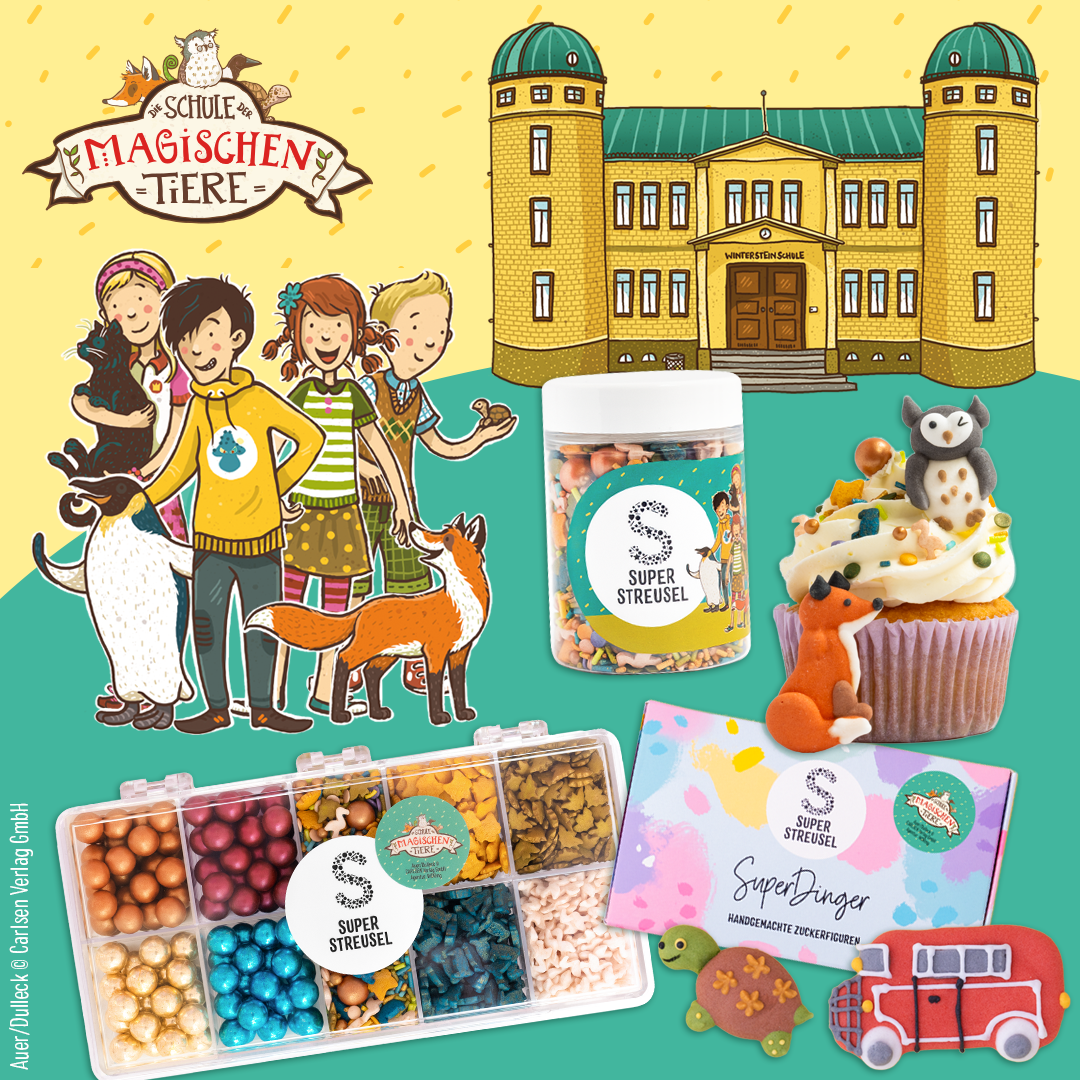 Mit dabei Idas Fuchs Rabbat, Jos Pinguin Juri, Eddies Fledermaus Eugenia, Katinkas Flamingo Polly und viele mehr! All die magischen Helfer pimpen deine Kuchen, Muffins und Torten für die coolsten Schule der magischen Tiere Mottopartys und Kindergeburtstage.