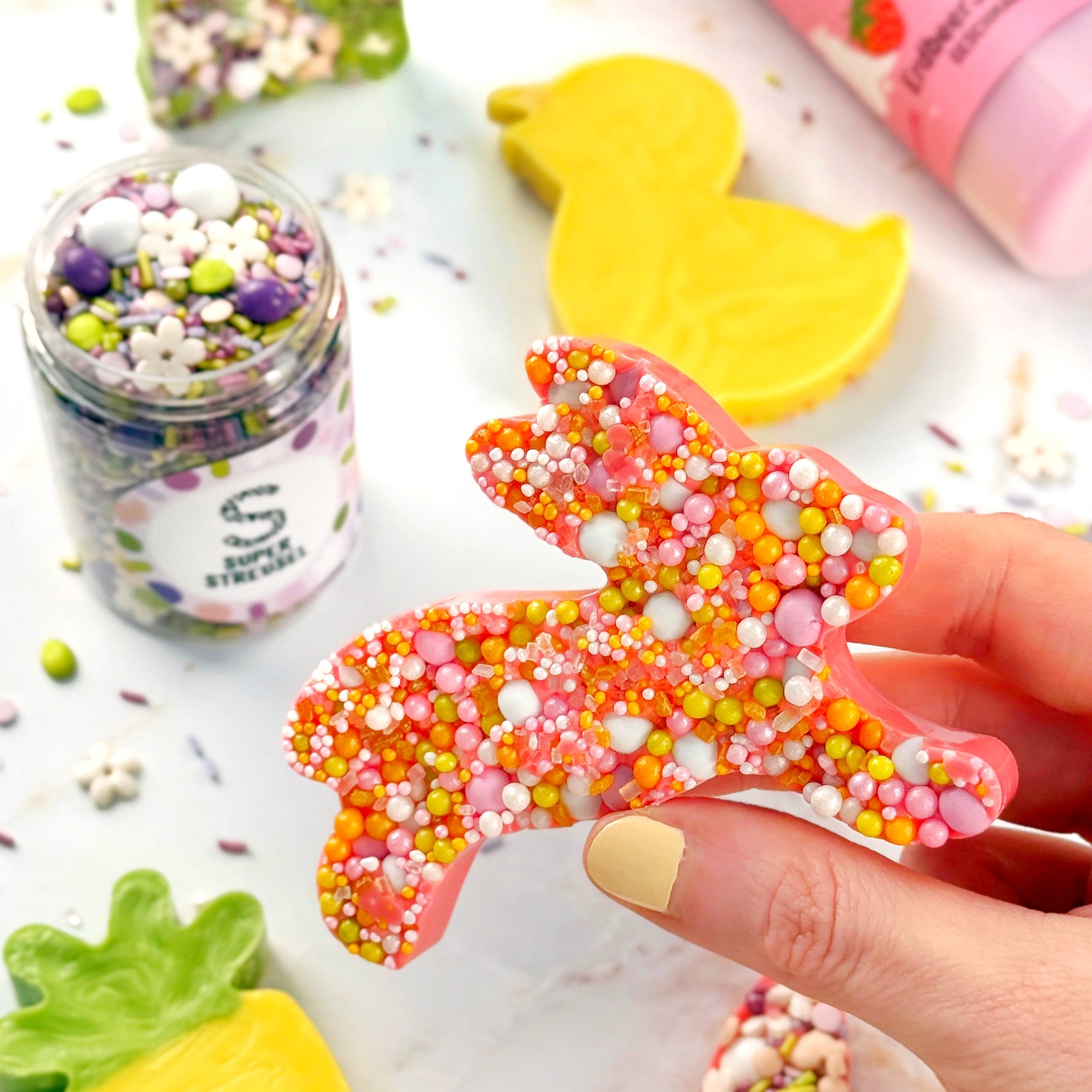 Erwärme deinen SuperDrip fix in der Mikrowelle oder im Wasserbad. Dann direkt ab damit auf Muffins, Kekse, Kuchen und Eis. SuperDrip trocknet viiiiel schneller als Schokolade und ist damit der perfekte Untergrund für deine Super Streusel.