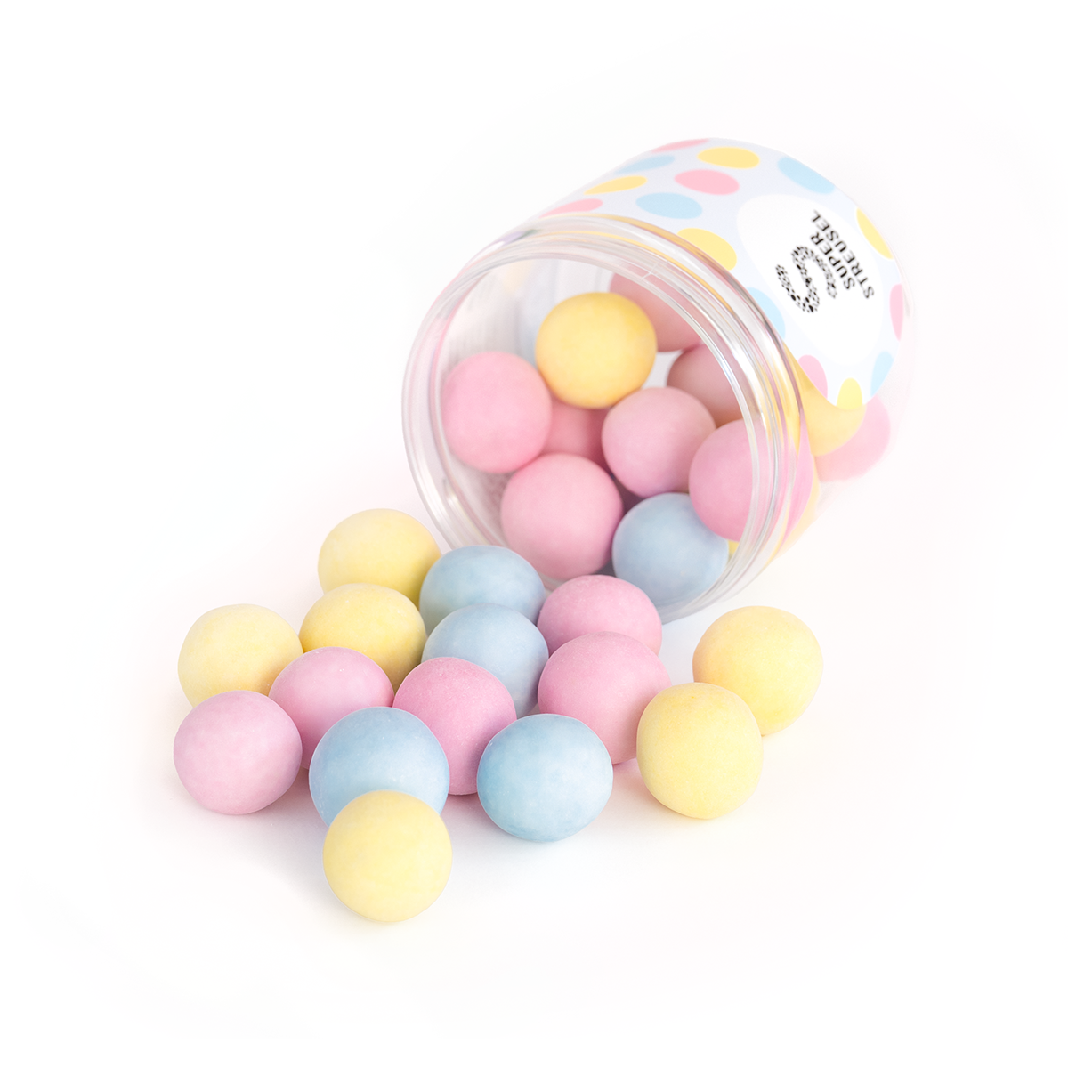 Für alle, die’s gerne fluffigknusprig mögen, kommen hier die MarshmallowKugeln – die süßeste KugelKombi seit es Super Streusel gibt! Prall, rund, pastellig schön und innen: ein soooftiger Marshmallowkern, ummantelt mit zarter Schoki. Diese Kugeln werden das absolute Highlight auf Cupcakes, Torten oder Törtchen. Oooooder sie werden einfach blitzschnell vernascht, bevor sie es auf den Kuchen schaffen.